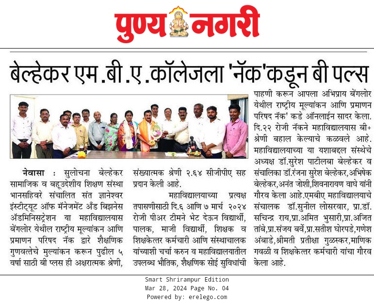 In an increasingly competitive business environment - where national borders are of a less concen-it is clear that INDIA as a whole has a pressing need for sophisticated business leaders. These regional leaders must be wholly qualified to deal successfully with rapid and far-reaching changes,including the rapid development of information technology currently fueling global business.Belhekar Group of Institute develops business management post gradutes with the knowledge and analytical skills needed to take effective change of new economy.
